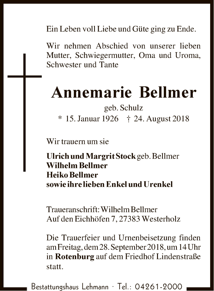 Hier finden Sie alle Traueranzeigen aus der Zeitung, die bisher für Annemarie Bellmer erschienen sind. Weitere Traueranzeigen, die in der Zeitung erscheinen, werden hier ebenfalls aufgelistet