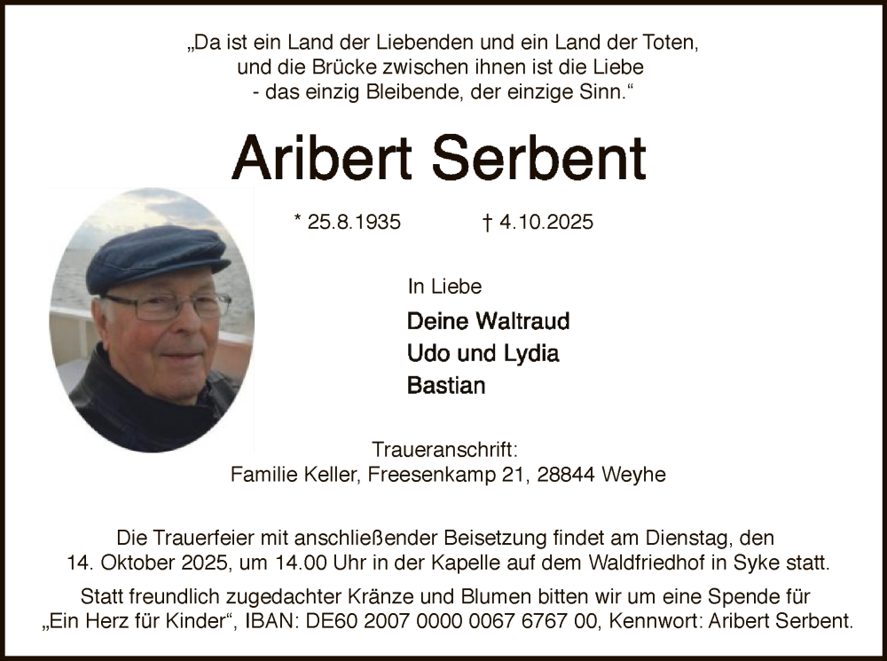 Hier finden Sie alle Traueranzeigen aus der Zeitung, die bisher für Aribert Serbent erschienen sind. Weitere Traueranzeigen, die in der Zeitung erscheinen, werden hier ebenfalls aufgelistet