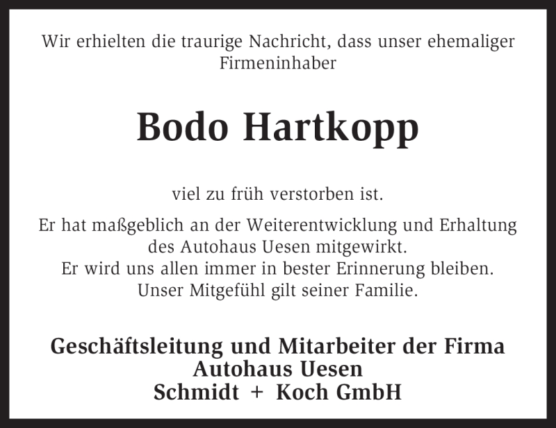 Hier finden Sie alle Traueranzeigen aus der Zeitung, die bisher für Bodo Hartkopp erschienen sind. Weitere Traueranzeigen, die in der Zeitung erscheinen, werden hier ebenfalls aufgelistet