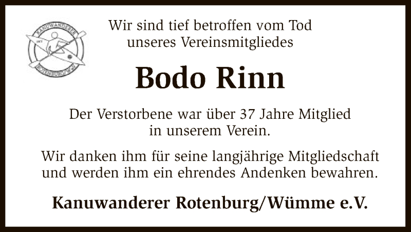 Hier finden Sie alle Traueranzeigen aus der Zeitung, die bisher für Bodo Rinn erschienen sind. Weitere Traueranzeigen, die in der Zeitung erscheinen, werden hier ebenfalls aufgelistet
