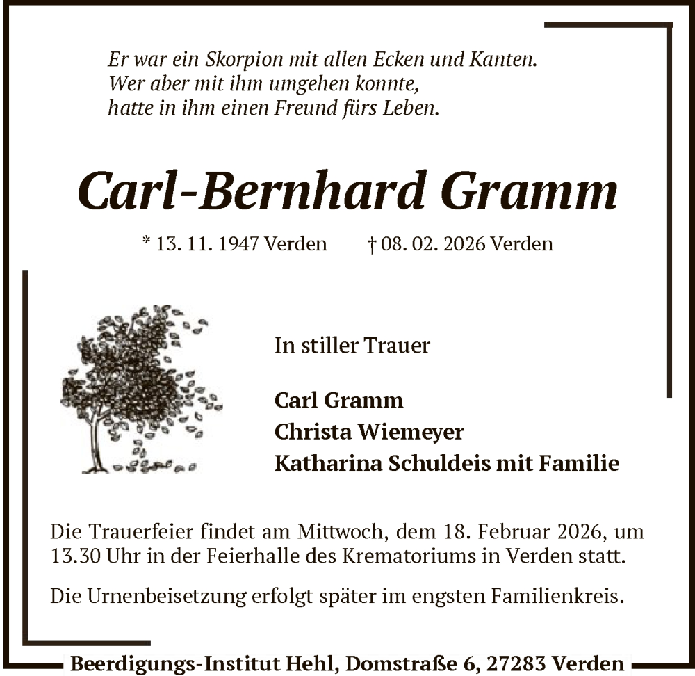 Hier finden Sie alle Traueranzeigen aus der Zeitung, die bisher für Carl-Bernhard Gramm erschienen sind. Weitere Traueranzeigen, die in der Zeitung erscheinen, werden hier ebenfalls aufgelistet