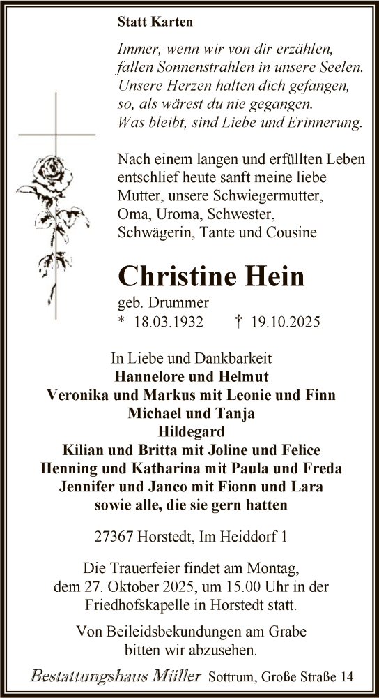 Hier finden Sie alle Traueranzeigen aus der Zeitung, die bisher für Christine Hein erschienen sind. Weitere Traueranzeigen, die in der Zeitung erscheinen, werden hier ebenfalls aufgelistet