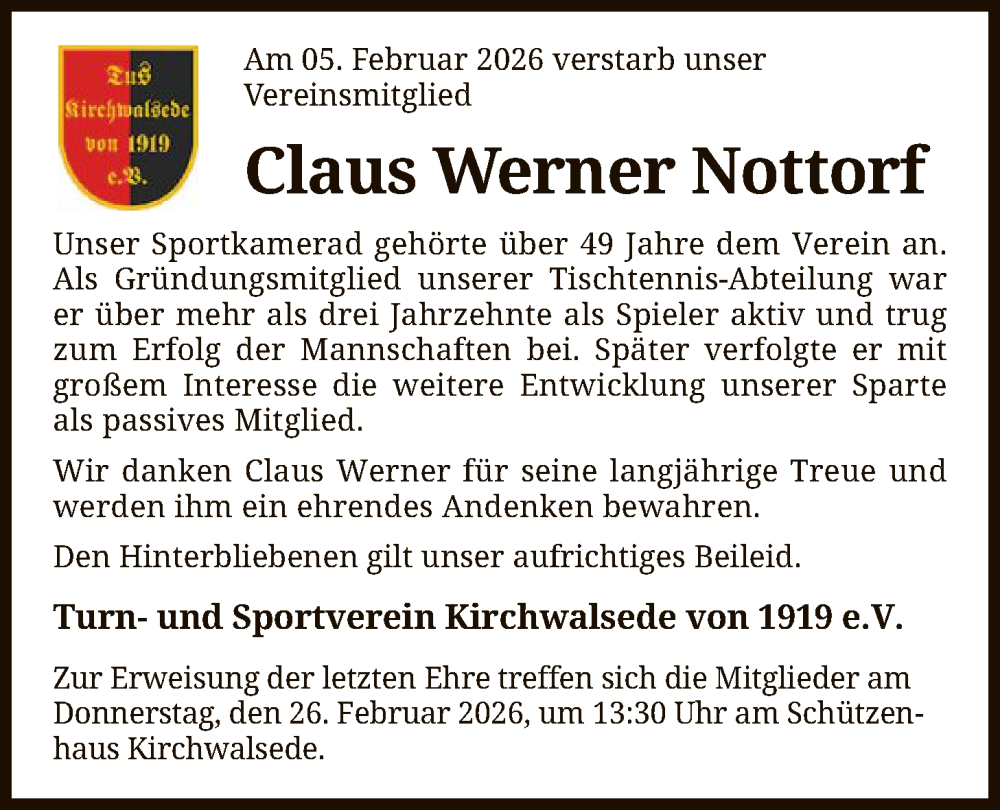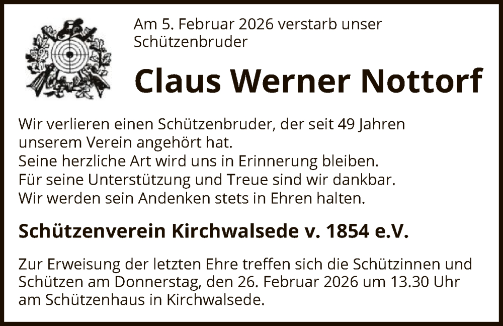 Hier finden Sie alle Traueranzeigen aus der Zeitung, die bisher für Claus Werner Nottorf erschienen sind. Weitere Traueranzeigen, die in der Zeitung erscheinen, werden hier ebenfalls aufgelistet