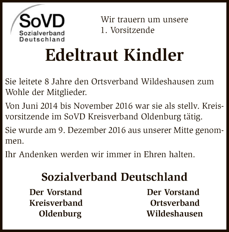 Hier finden Sie alle Traueranzeigen aus der Zeitung, die bisher für Edeltraut Kindler erschienen sind. Weitere Traueranzeigen, die in der Zeitung erscheinen, werden hier ebenfalls aufgelistet