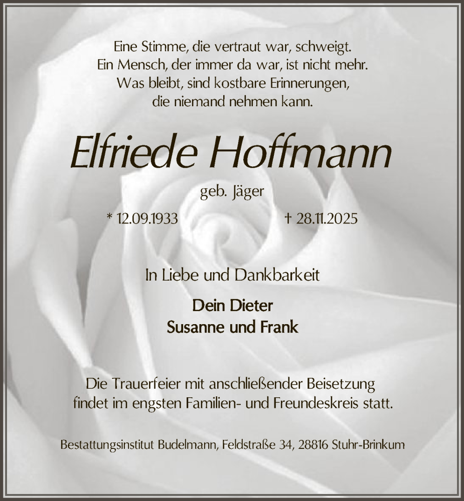Hier finden Sie alle Traueranzeigen aus der Zeitung, die bisher für Elfriede Hoffmann erschienen sind. Weitere Traueranzeigen, die in der Zeitung erscheinen, werden hier ebenfalls aufgelistet