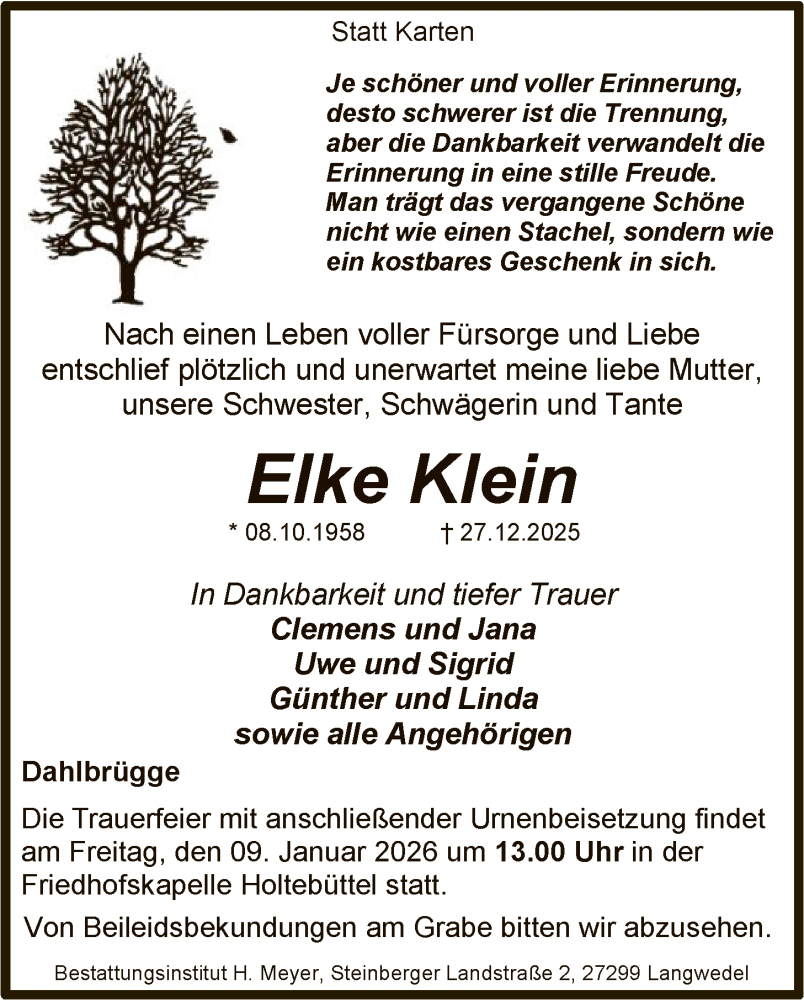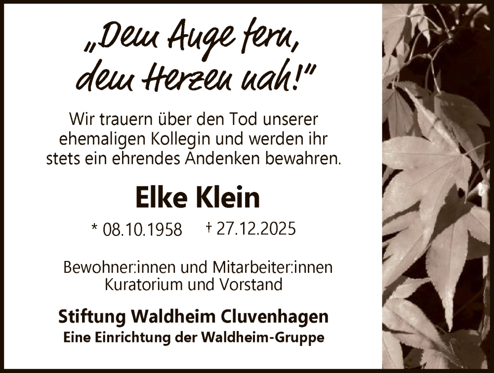 Hier finden Sie alle Traueranzeigen aus der Zeitung, die bisher für Elke Klein erschienen sind. Weitere Traueranzeigen, die in der Zeitung erscheinen, werden hier ebenfalls aufgelistet
