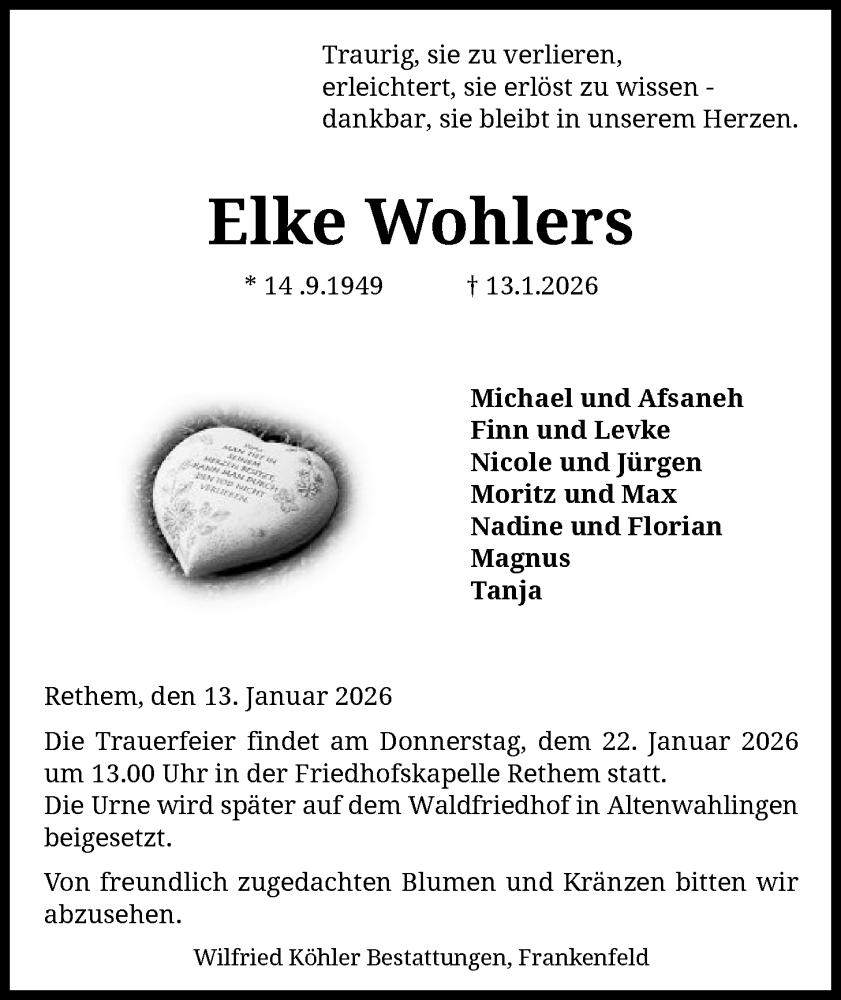 Hier finden Sie alle Traueranzeigen aus der Zeitung, die bisher für Elke Wohlers erschienen sind. Weitere Traueranzeigen, die in der Zeitung erscheinen, werden hier ebenfalls aufgelistet