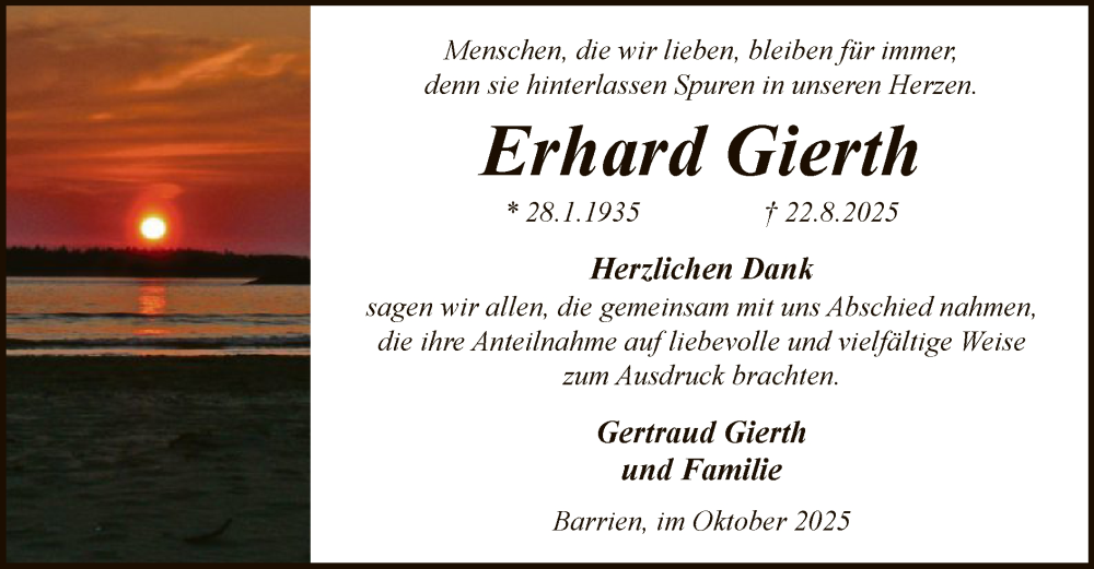 Hier finden Sie alle Traueranzeigen aus der Zeitung, die bisher für Erhard Gierth erschienen sind. Weitere Traueranzeigen, die in der Zeitung erscheinen, werden hier ebenfalls aufgelistet