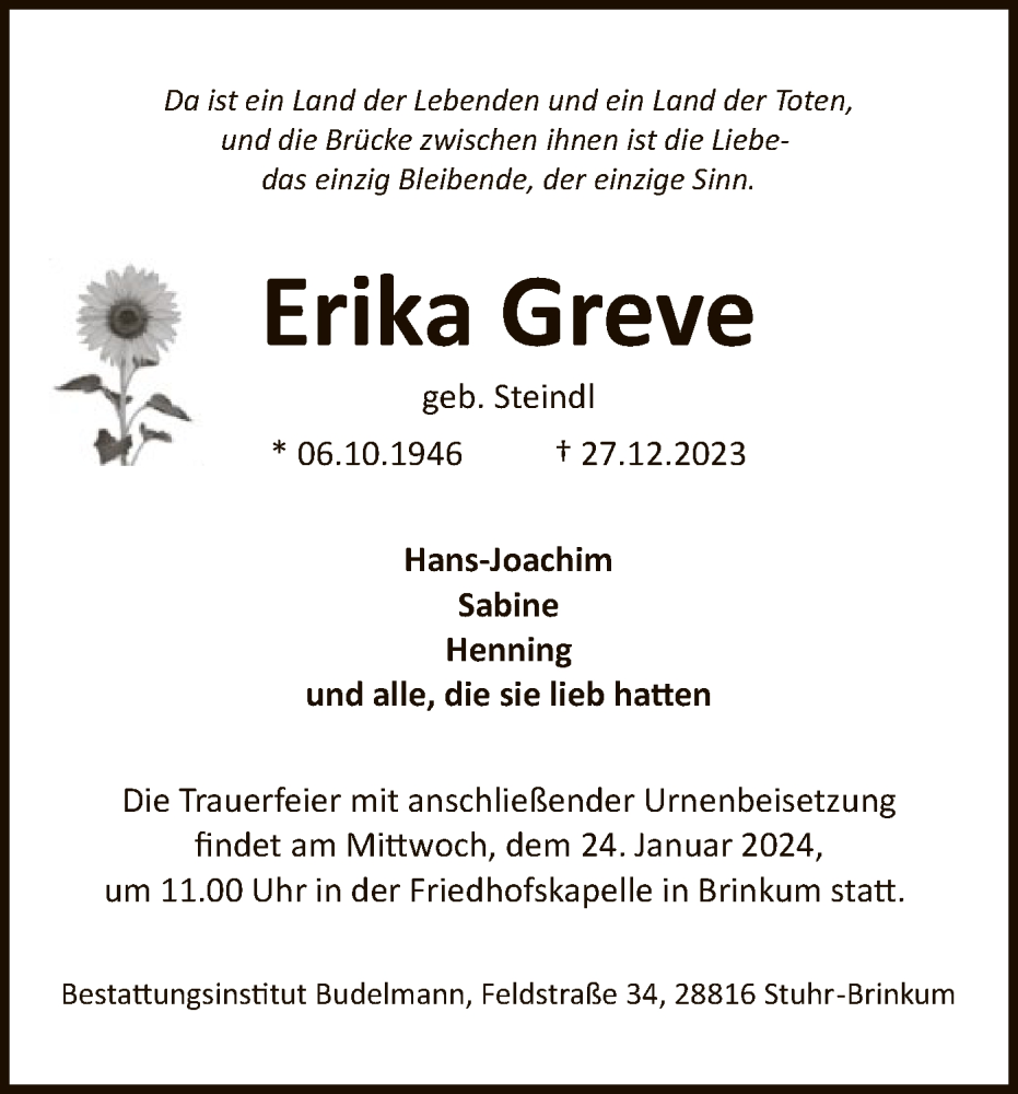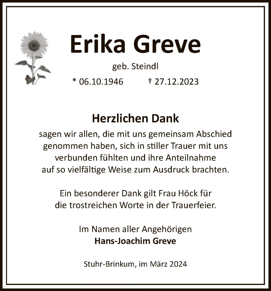 Hier finden Sie alle Traueranzeigen aus der Zeitung, die bisher für Erika Greve erschienen sind. Weitere Traueranzeigen, die in der Zeitung erscheinen, werden hier ebenfalls aufgelistet