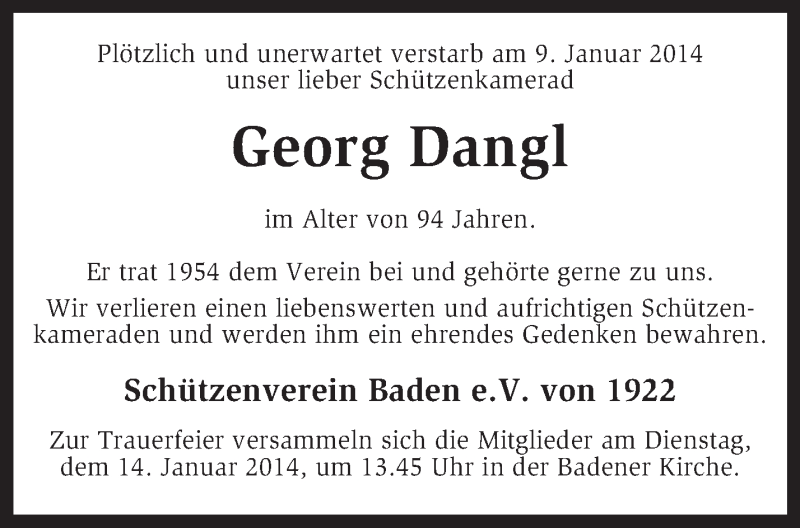 Hier finden Sie alle Traueranzeigen aus der Zeitung, die bisher für Georg Dangl erschienen sind. Weitere Traueranzeigen, die in der Zeitung erscheinen, werden hier ebenfalls aufgelistet