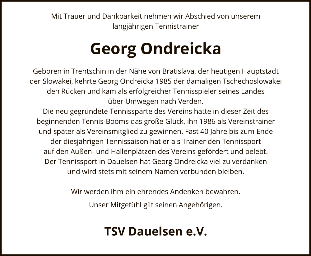 Hier finden Sie alle Traueranzeigen aus der Zeitung, die bisher für Georg Ondreicka erschienen sind. Weitere Traueranzeigen, die in der Zeitung erscheinen, werden hier ebenfalls aufgelistet