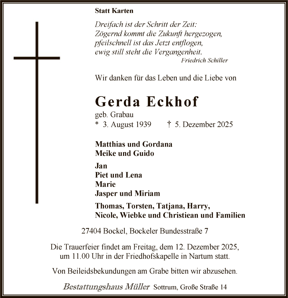 Hier finden Sie alle Traueranzeigen aus der Zeitung, die bisher für Gerda Eckhof erschienen sind. Weitere Traueranzeigen, die in der Zeitung erscheinen, werden hier ebenfalls aufgelistet