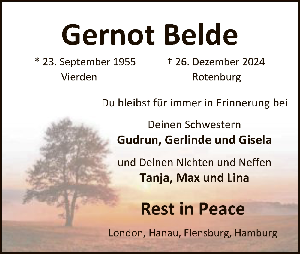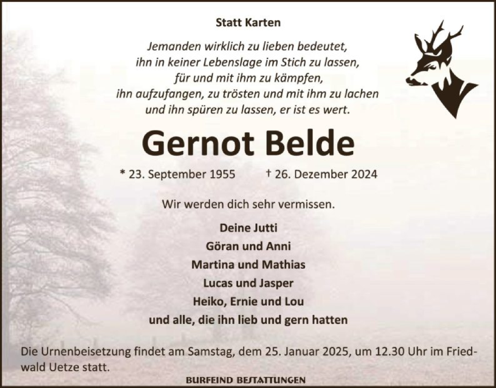 Hier finden Sie alle Traueranzeigen aus der Zeitung, die bisher für Gernot Belde erschienen sind. Weitere Traueranzeigen, die in der Zeitung erscheinen, werden hier ebenfalls aufgelistet