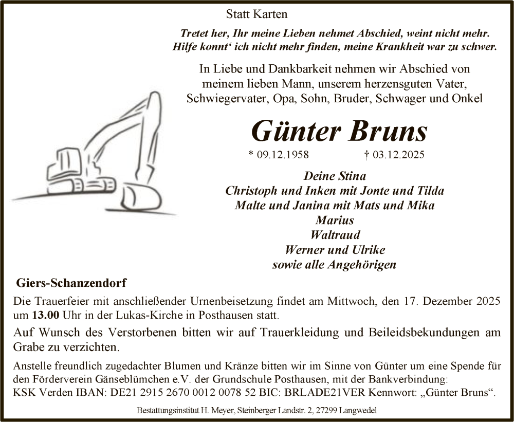 Hier finden Sie alle Traueranzeigen aus der Zeitung, die bisher für Günter Bruns erschienen sind. Weitere Traueranzeigen, die in der Zeitung erscheinen, werden hier ebenfalls aufgelistet