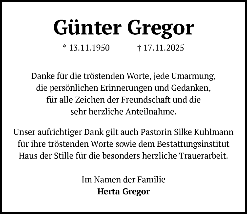 Hier finden Sie alle Traueranzeigen aus der Zeitung, die bisher für Günter Gregor erschienen sind. Weitere Traueranzeigen, die in der Zeitung erscheinen, werden hier ebenfalls aufgelistet