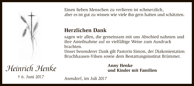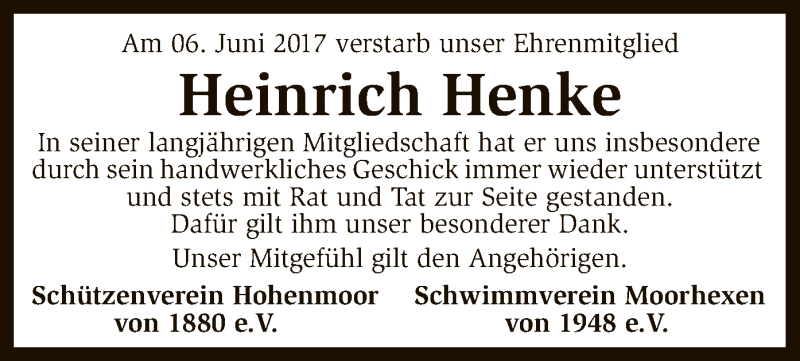 Hier finden Sie alle Traueranzeigen aus der Zeitung, die bisher für Heinrich Henke erschienen sind. Weitere Traueranzeigen, die in der Zeitung erscheinen, werden hier ebenfalls aufgelistet