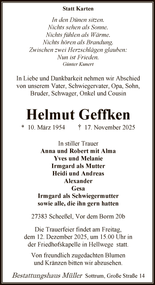 Hier finden Sie alle Traueranzeigen aus der Zeitung, die bisher für Helmut Geffken erschienen sind. Weitere Traueranzeigen, die in der Zeitung erscheinen, werden hier ebenfalls aufgelistet