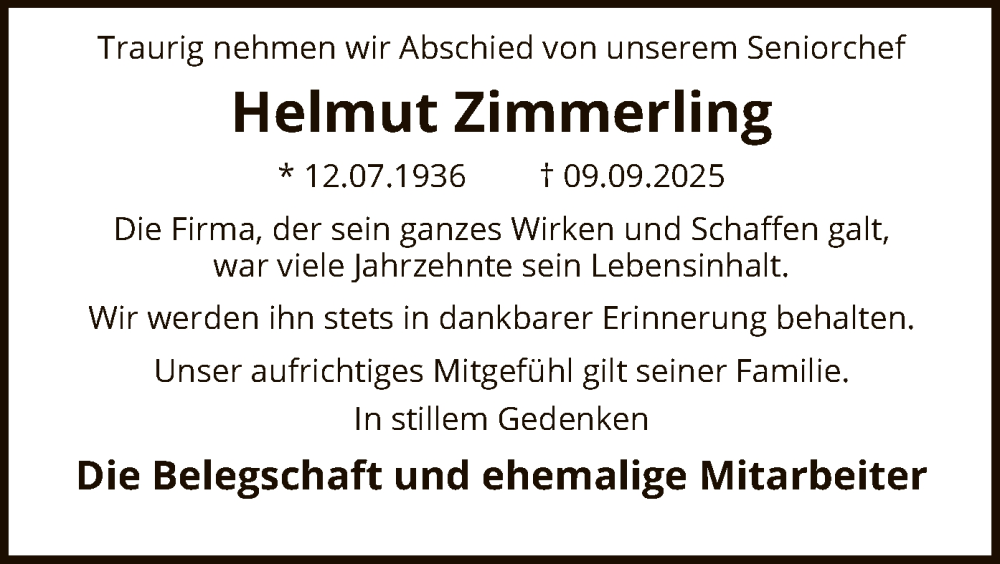 Hier finden Sie alle Traueranzeigen aus der Zeitung, die bisher für Helmut Zimmerling erschienen sind. Weitere Traueranzeigen, die in der Zeitung erscheinen, werden hier ebenfalls aufgelistet