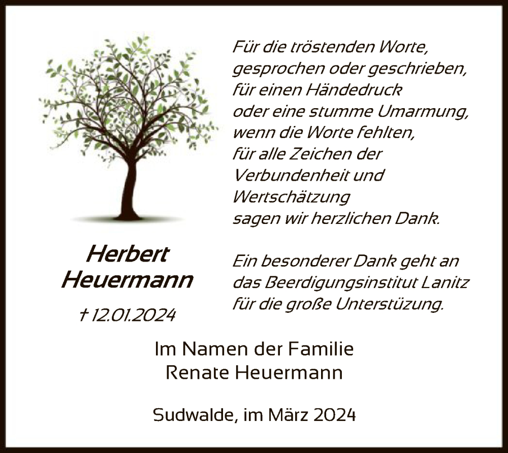 Hier finden Sie alle Traueranzeigen aus der Zeitung, die bisher für Herbert Heuermann erschienen sind. Weitere Traueranzeigen, die in der Zeitung erscheinen, werden hier ebenfalls aufgelistet