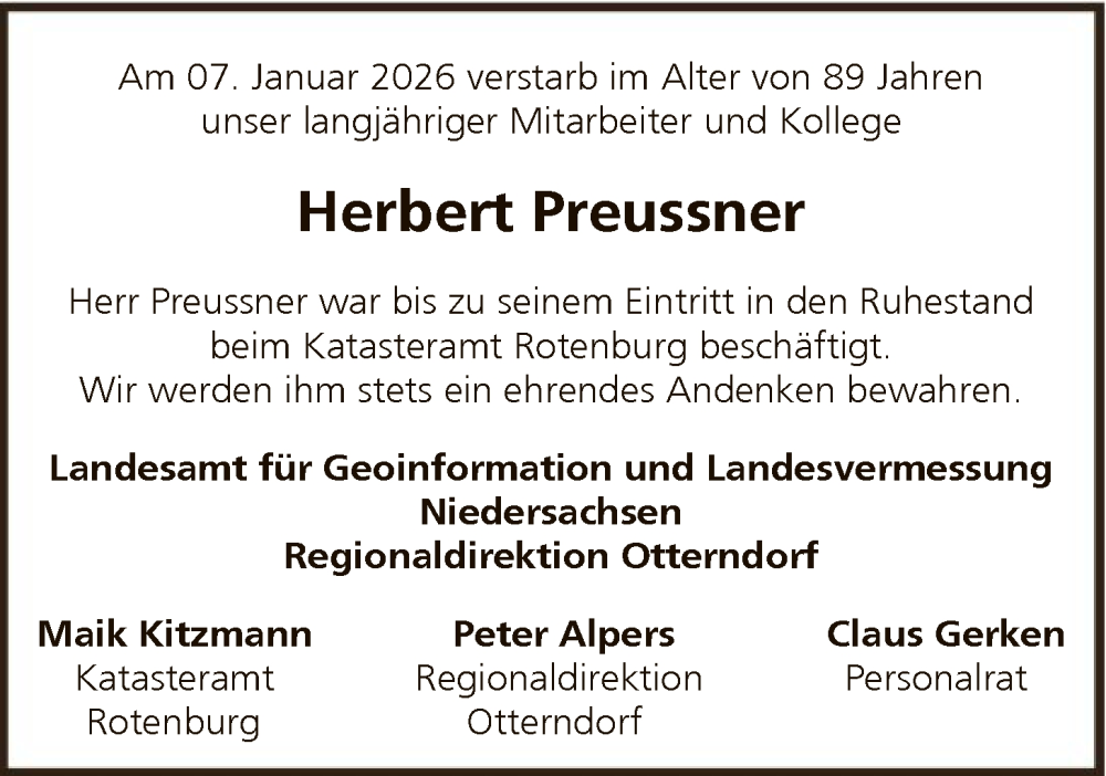 Hier finden Sie alle Traueranzeigen aus der Zeitung, die bisher für Herbert Preussner erschienen sind. Weitere Traueranzeigen, die in der Zeitung erscheinen, werden hier ebenfalls aufgelistet