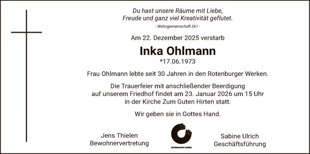 Hier finden Sie alle Traueranzeigen aus der Zeitung, die bisher für Inka Ohlmann erschienen sind. Weitere Traueranzeigen, die in der Zeitung erscheinen, werden hier ebenfalls aufgelistet