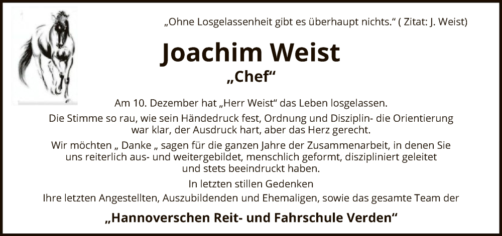 Hier finden Sie alle Traueranzeigen aus der Zeitung, die bisher für Joachim Weist erschienen sind. Weitere Traueranzeigen, die in der Zeitung erscheinen, werden hier ebenfalls aufgelistet