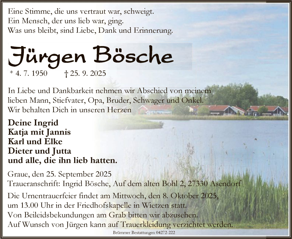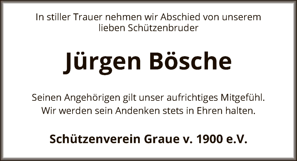 Hier finden Sie alle Traueranzeigen aus der Zeitung, die bisher für Jürgen Bösche erschienen sind. Weitere Traueranzeigen, die in der Zeitung erscheinen, werden hier ebenfalls aufgelistet
