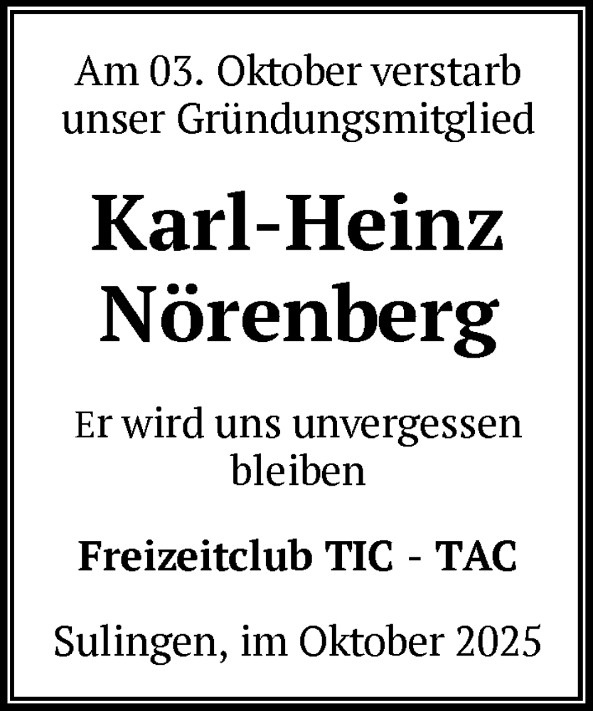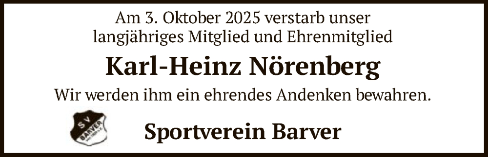 Hier finden Sie alle Traueranzeigen aus der Zeitung, die bisher für Karl-Heinz Nörenberg erschienen sind. Weitere Traueranzeigen, die in der Zeitung erscheinen, werden hier ebenfalls aufgelistet