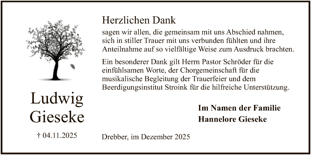 Hier finden Sie alle Traueranzeigen aus der Zeitung, die bisher für Ludwig Gieseke erschienen sind. Weitere Traueranzeigen, die in der Zeitung erscheinen, werden hier ebenfalls aufgelistet