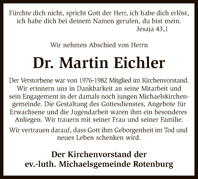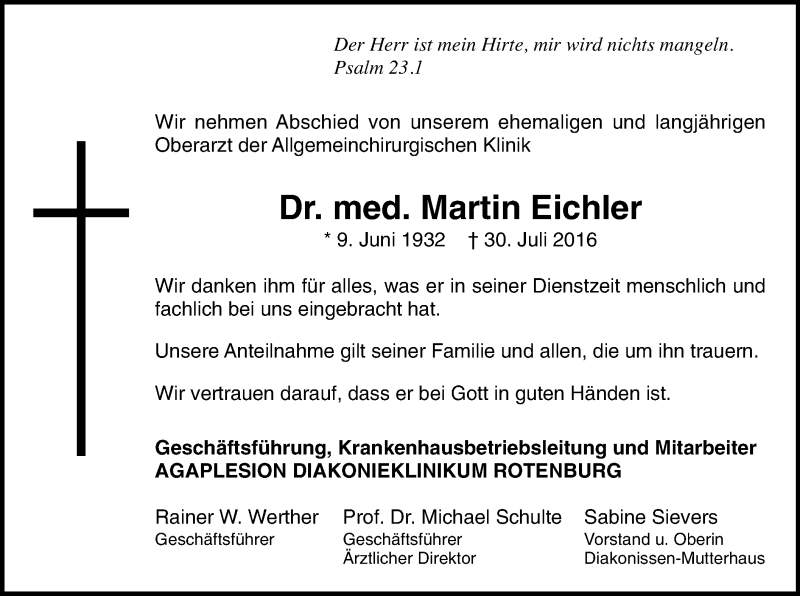 Hier finden Sie alle Traueranzeigen aus der Zeitung, die bisher für Martin Eichler erschienen sind. Weitere Traueranzeigen, die in der Zeitung erscheinen, werden hier ebenfalls aufgelistet
