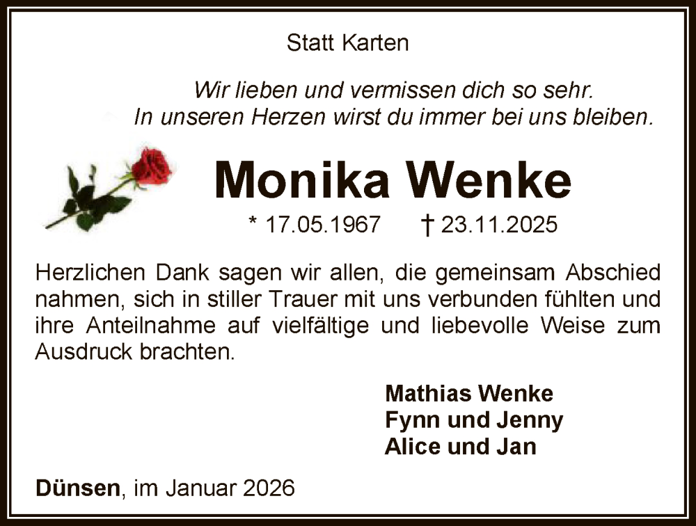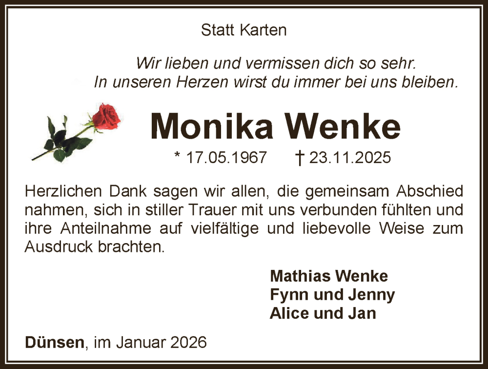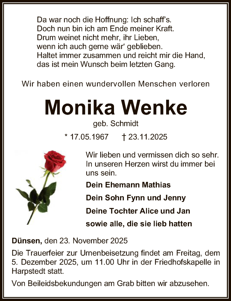 Hier finden Sie alle Traueranzeigen aus der Zeitung, die bisher für Monika Wenke erschienen sind. Weitere Traueranzeigen, die in der Zeitung erscheinen, werden hier ebenfalls aufgelistet