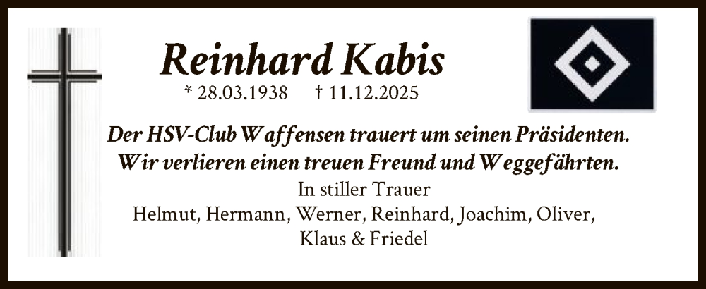 Hier finden Sie alle Traueranzeigen aus der Zeitung, die bisher für Reinhard Kabis erschienen sind. Weitere Traueranzeigen, die in der Zeitung erscheinen, werden hier ebenfalls aufgelistet