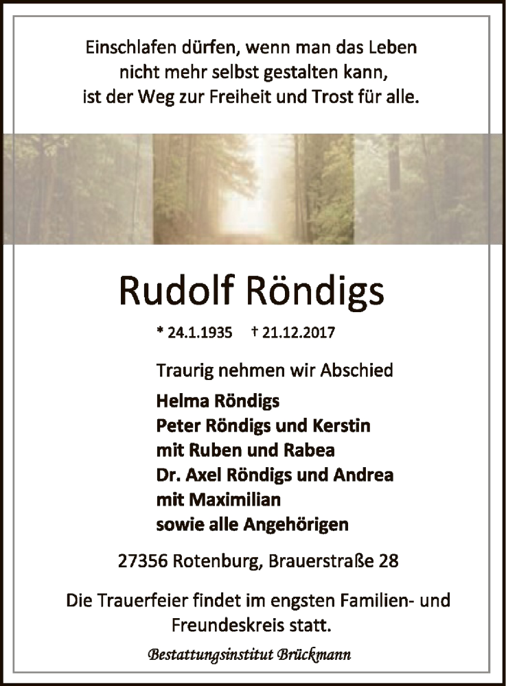 Hier finden Sie alle Traueranzeigen aus der Zeitung, die bisher für Rudolf Röndigs erschienen sind. Weitere Traueranzeigen, die in der Zeitung erscheinen, werden hier ebenfalls aufgelistet