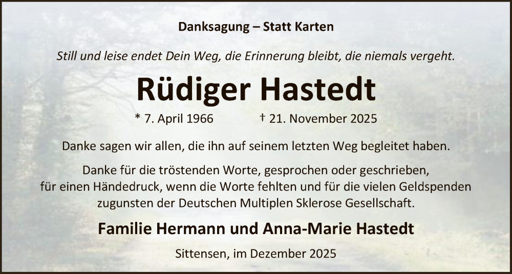 Hier finden Sie alle Traueranzeigen aus der Zeitung, die bisher für Rüdiger Hastedt erschienen sind. Weitere Traueranzeigen, die in der Zeitung erscheinen, werden hier ebenfalls aufgelistet