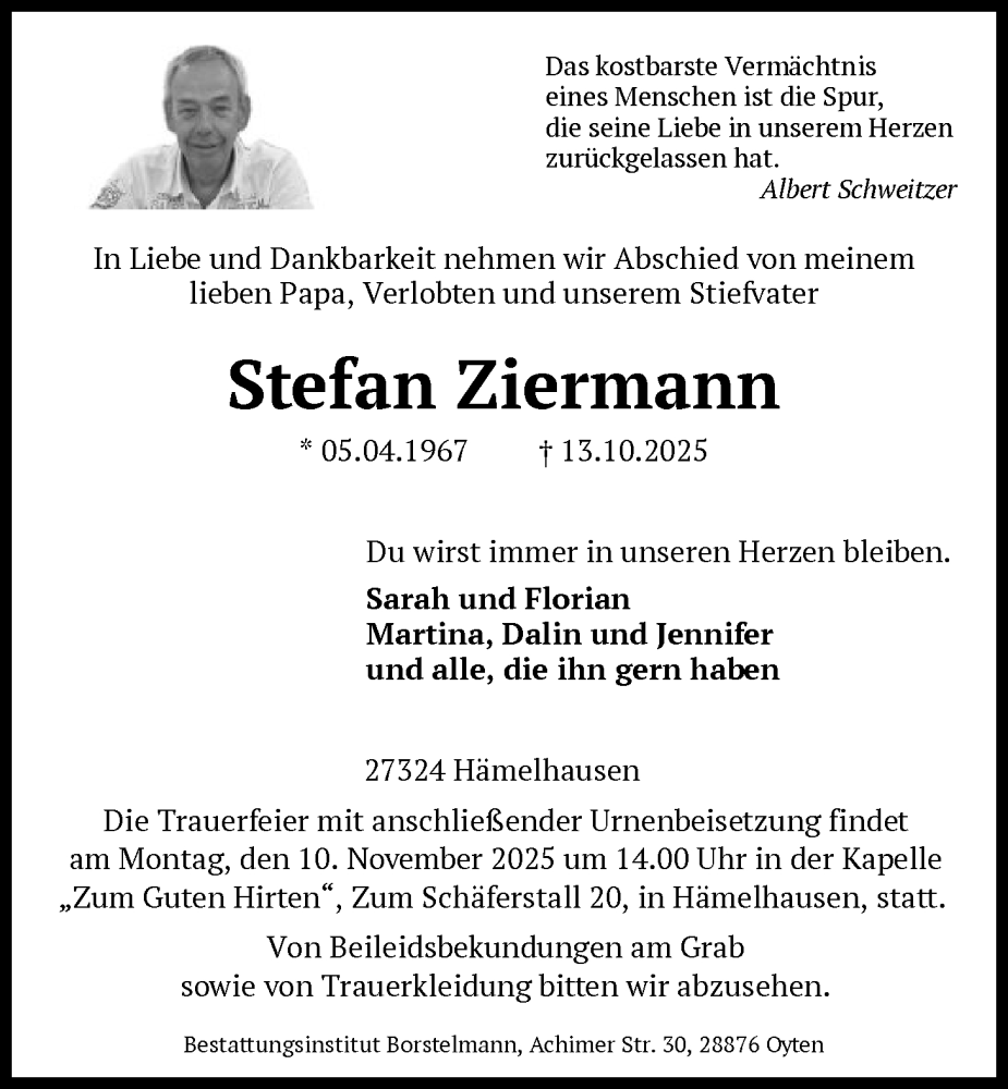 Hier finden Sie alle Traueranzeigen aus der Zeitung, die bisher für Stefan Ziermann erschienen sind. Weitere Traueranzeigen, die in der Zeitung erscheinen, werden hier ebenfalls aufgelistet