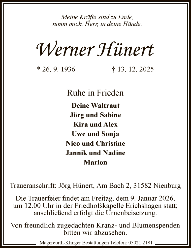 Hier finden Sie alle Traueranzeigen aus der Zeitung, die bisher für Werner Hünert erschienen sind. Weitere Traueranzeigen, die in der Zeitung erscheinen, werden hier ebenfalls aufgelistet