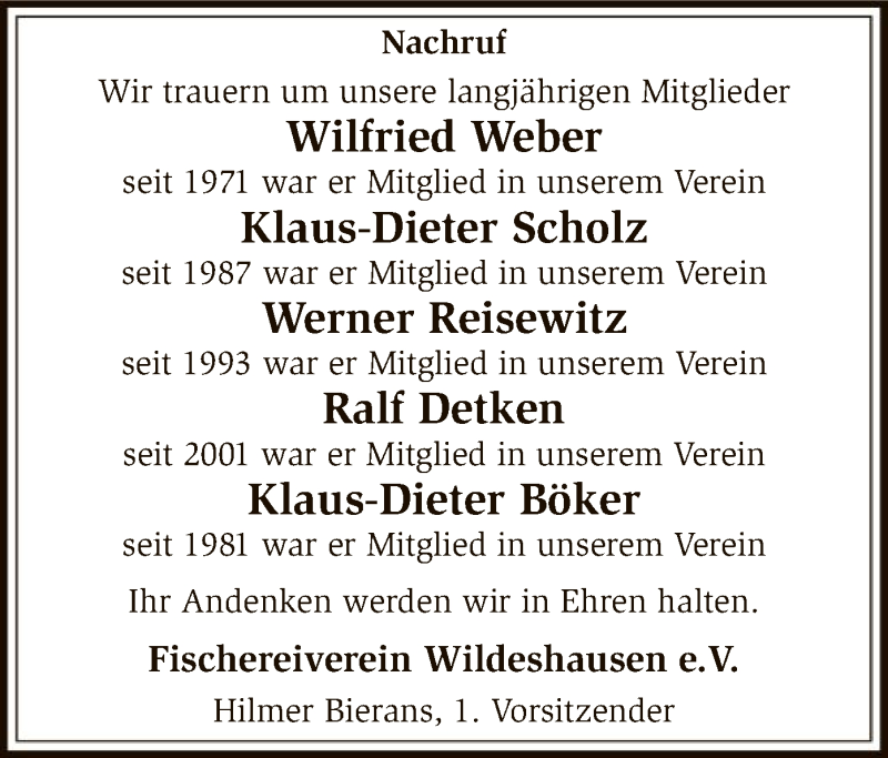 Hier finden Sie alle Traueranzeigen aus der Zeitung, die bisher für Werner Reisewitz erschienen sind. Weitere Traueranzeigen, die in der Zeitung erscheinen, werden hier ebenfalls aufgelistet