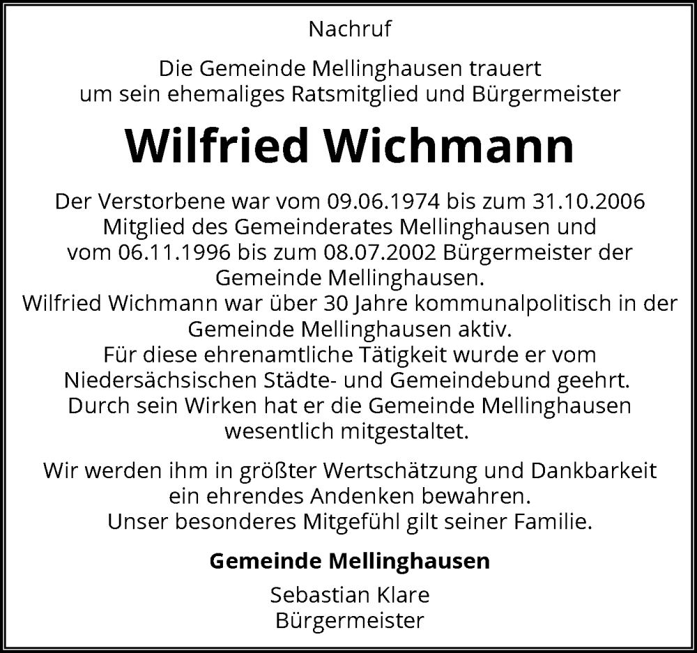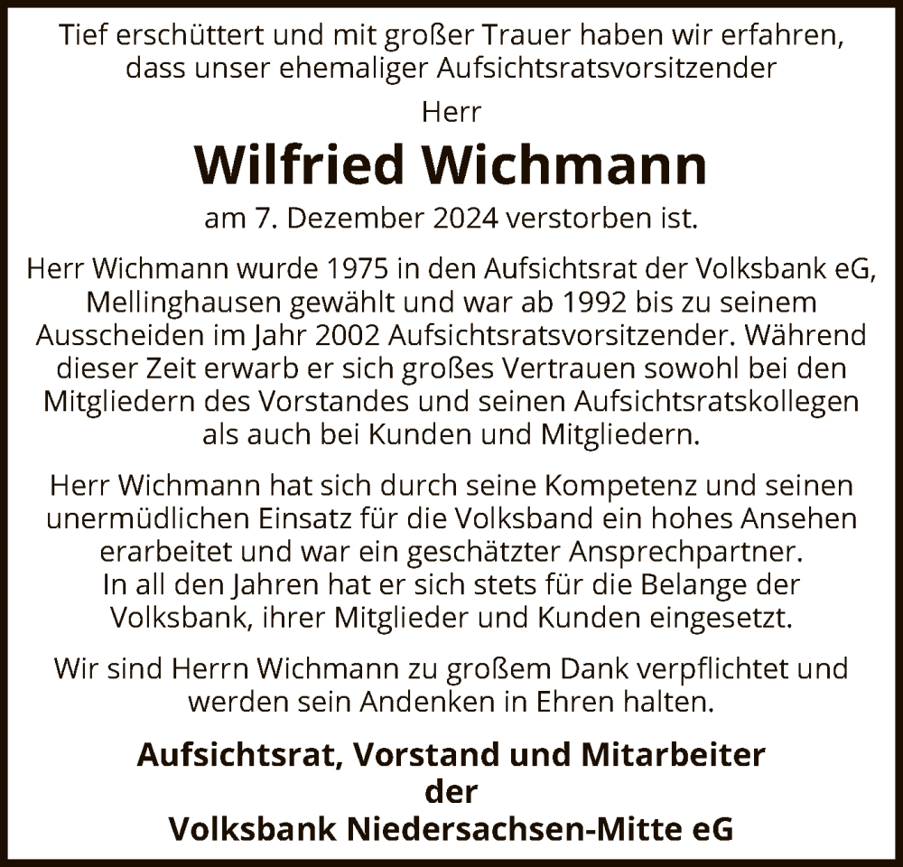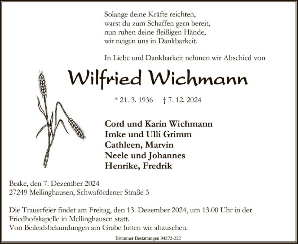 Hier finden Sie alle Traueranzeigen aus der Zeitung, die bisher für Wilfried Wichmann erschienen sind. Weitere Traueranzeigen, die in der Zeitung erscheinen, werden hier ebenfalls aufgelistet