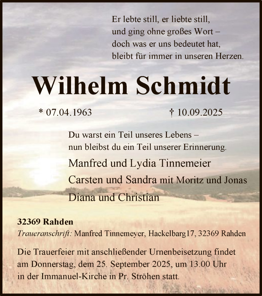 Hier finden Sie alle Traueranzeigen aus der Zeitung, die bisher für Wilhelm Schmidt erschienen sind. Weitere Traueranzeigen, die in der Zeitung erscheinen, werden hier ebenfalls aufgelistet