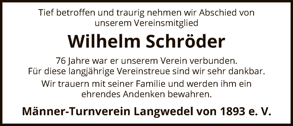Hier finden Sie alle Traueranzeigen aus der Zeitung, die bisher für Wilhelm Schröder erschienen sind. Weitere Traueranzeigen, die in der Zeitung erscheinen, werden hier ebenfalls aufgelistet