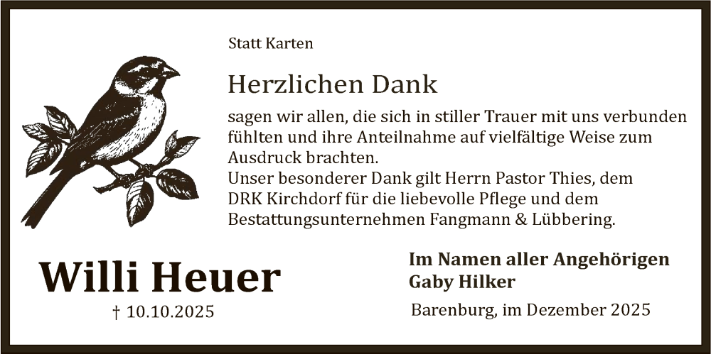Hier finden Sie alle Traueranzeigen aus der Zeitung, die bisher für Willi Heuer erschienen sind. Weitere Traueranzeigen, die in der Zeitung erscheinen, werden hier ebenfalls aufgelistet