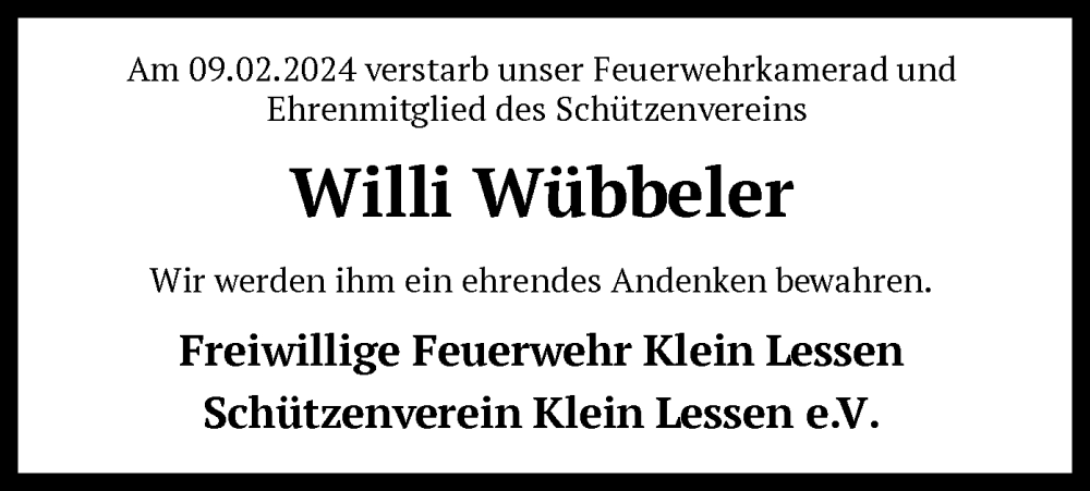 Hier finden Sie alle Traueranzeigen aus der Zeitung, die bisher für Willi Wübbeler erschienen sind. Weitere Traueranzeigen, die in der Zeitung erscheinen, werden hier ebenfalls aufgelistet