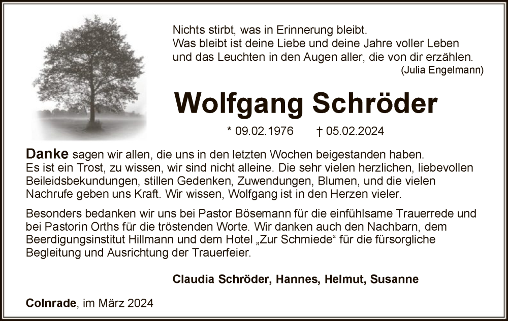 Hier finden Sie alle Traueranzeigen aus der Zeitung, die bisher für Wolfgang Schröder erschienen sind. Weitere Traueranzeigen, die in der Zeitung erscheinen, werden hier ebenfalls aufgelistet